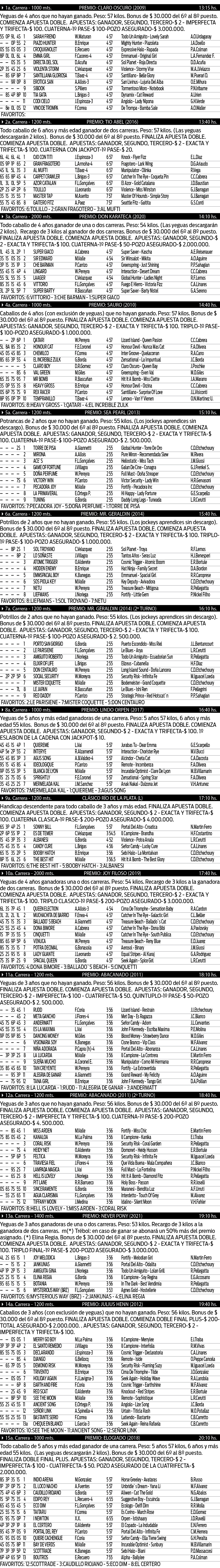 Excelentes programas de carreras con atractivos inscriptos de diferentes haras que presagian unas excelentes jornadas de Turf.