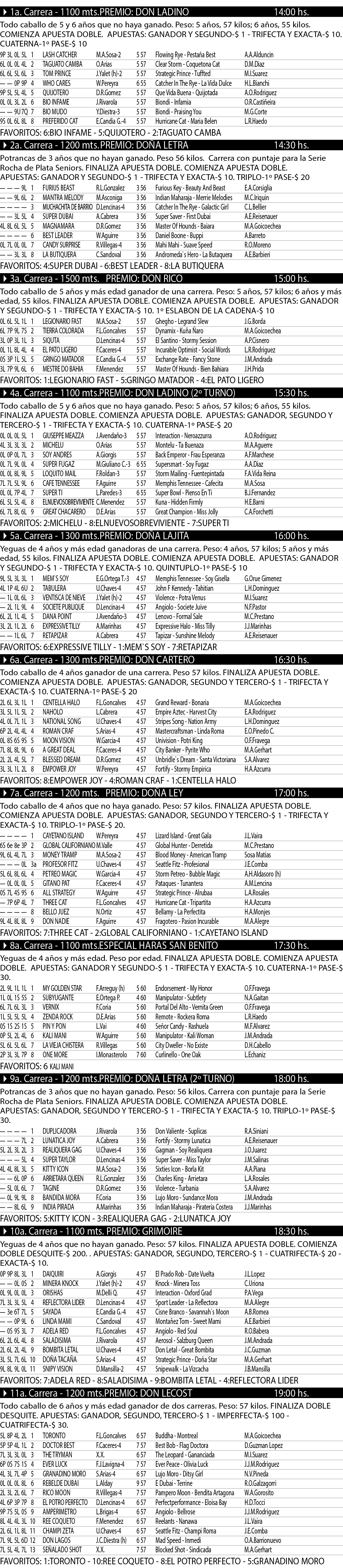 Domingo 28: Actividad en el Hipódromo de La Plata