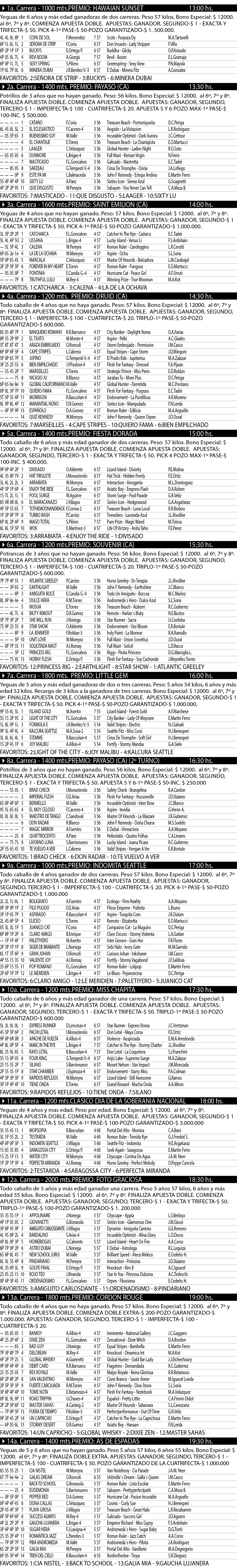 Excelentes programas de carreras con atractivos inscriptos de diferentes haras que presagian unas excelentes jornadas de Turf.