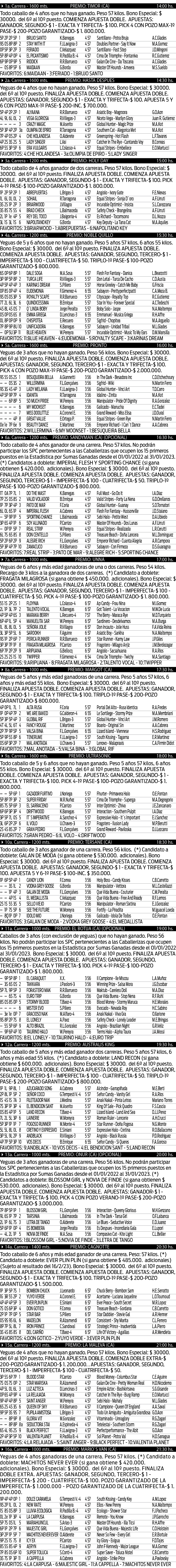 Excelentes programas de carreras con atractivos inscriptos de diferentes haras que presagian unas excelentes jornadas de Turf.