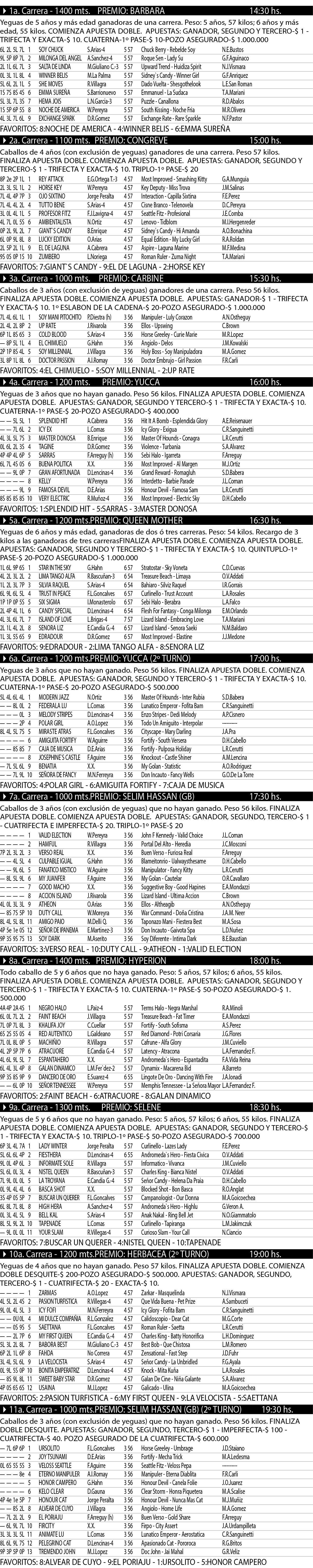 Excelentes programas de carreras con atractivos inscriptos de diferentes haras que presagian unas excelentes jornadas de Turf.