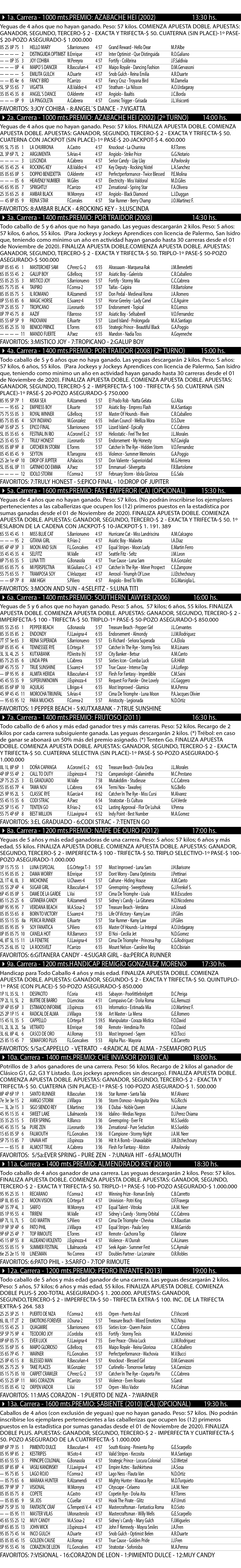 Excelentes programas de carreras con atractivos inscriptos de diferentes haras que presagian unas excelentes jornadas de Turf.