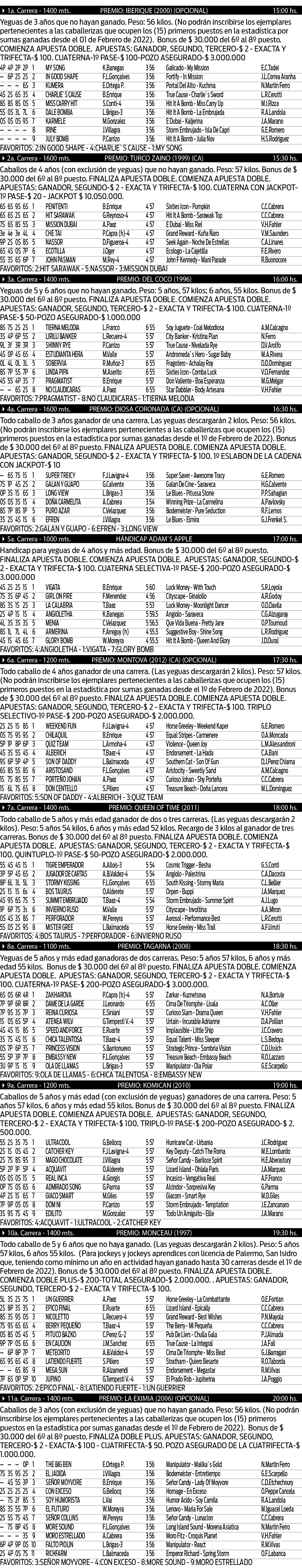 Excelentes programas de carreras con atractivos inscriptos de diferentes haras que presagian unas excelentes jornadas de Turf.